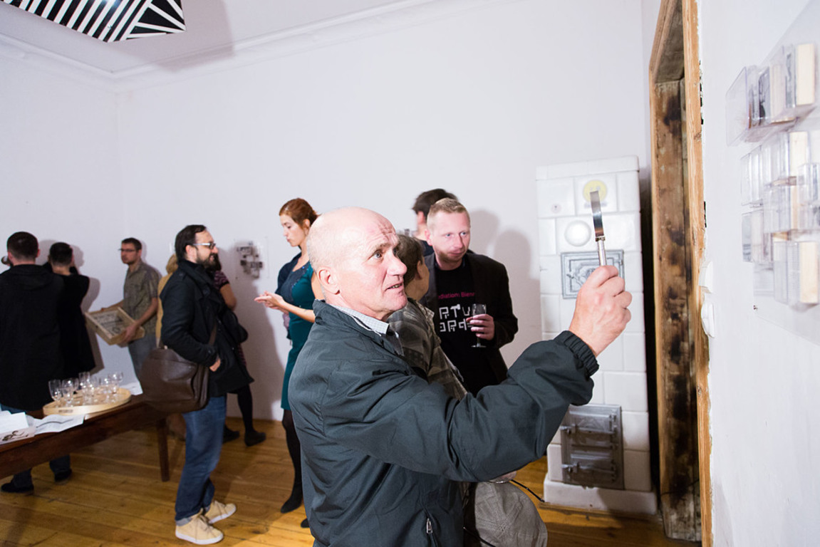 Wernisaż wystawy "Skok wzwyż" autorstwa Zoltána Lesiego i Ricardo Portilho wraz z performancem „Skok i homar”