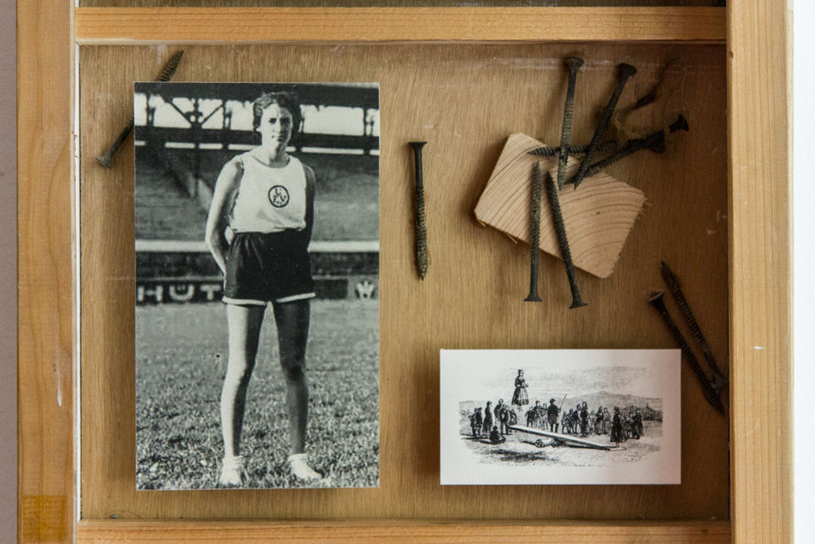 Dokumenty z lat trzydziestych o sporcie i interseksualizmie, fałszywe wiadomości, raporty policyjne i homary znajdują wspólną przestrzeń w surrealistycznych skrzynkach. Skok wzwyż to wspólna wystawa Zoltána Lesiego (Węgry) i Ricardo Portilho (Brazylia), będąca kontynuacją ich wcześniejszego projektu, niemieckojęzycznego fanzine’u Sprung. Po Budapeszcie i Stuttgarcie ekspozycja jest po raz pierwszy pokazana w Polsce. Uzupełnieniem prac są wiersze Zoltána Lesiego w przekładzie Daniela Warmuza.